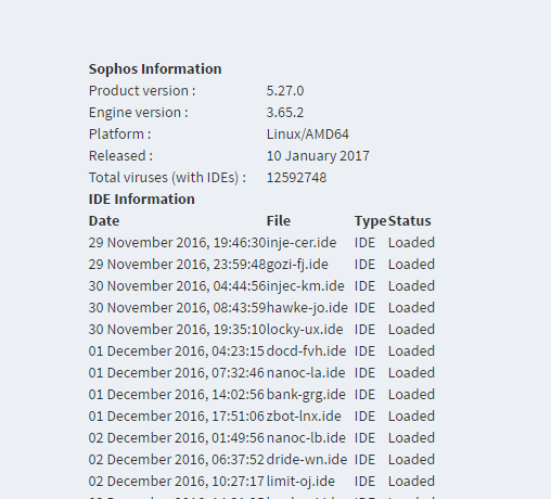 Resimde yer alan ayar sayfamızda Sophos antivirüs yazılımına ait güncelleme verileri detaylı olarak yer almaktadır. Antivirüs yazılımına ait güncellik durumu,yazılım versiyonu,veritabanında tanımlı virüs sayısı gibi detaylı bilgiler yer almaktadır.